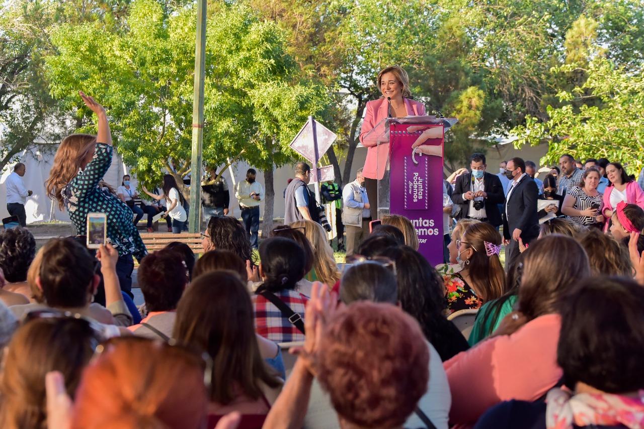 Maru Campos Galván reafirmó su compromiso con Ciudad Juárez: “Aquí estamos, aquí vamos a estar y aquí seguirá caminando con ustedes su Gobernadora”, acotó.