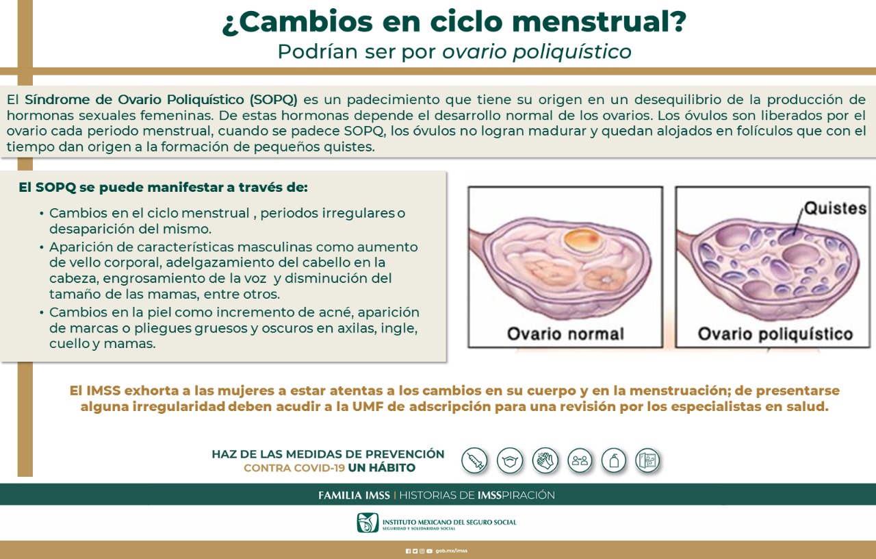 El Instituto Mexicano del Seguro Social (IMSS) en Chihuahua informa sobre padecimientos como el Síndrome de Ovario Poliquístico (SOPQ), una enfermedad que afecta la salud reproductiva de las mujeres, incluso, puede ser causa de infertilidad, si no se trata a tiempo.