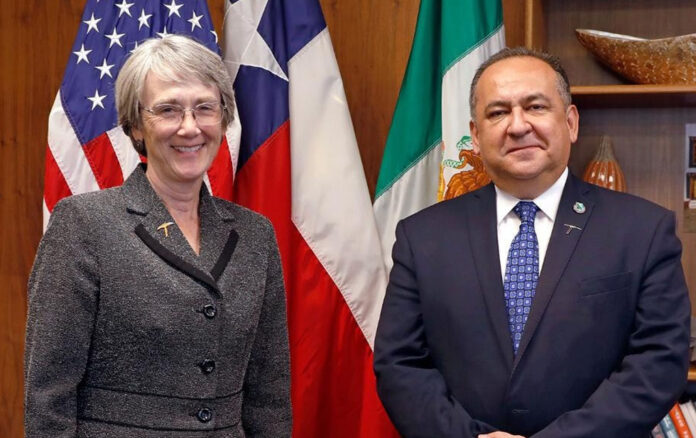 El rector electo destacó la labor que realiza UTEP al brindar educación a más de mil 200 juarenses que diariamente cruzan la frontera para tomar clases, a lo que la presidenta Wilson consideró que “podemos hacer algo más juntos.