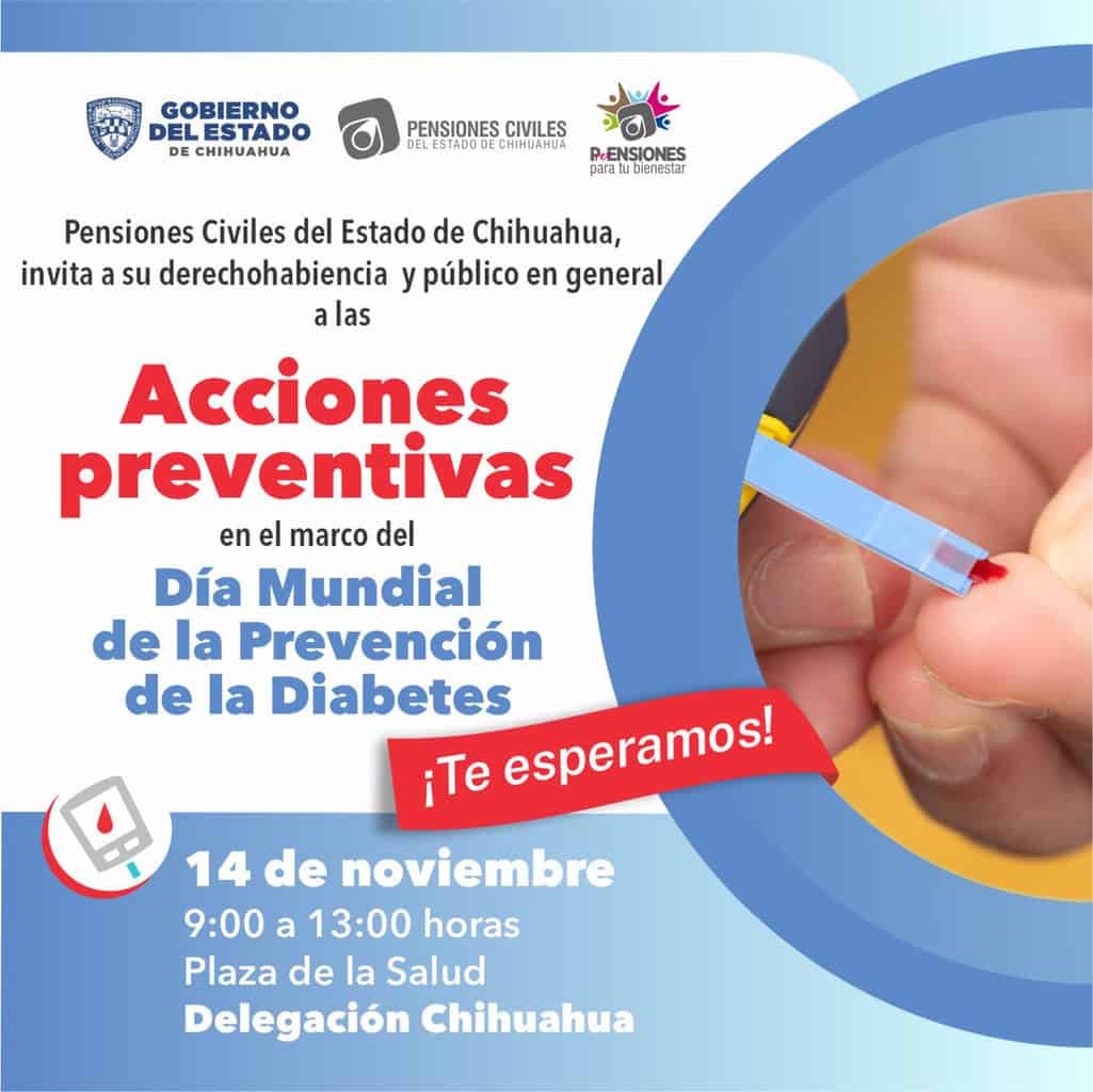 Las actividades serán en la Plaza de la Salud de la ciudad de Chihuahua, de 9:00 a 13:00 horas, donde se realizarán pruebas rápidas de glucosa, se brindará asesoría personalizada para fomentar un estilo de vida saludable, y se distribuirá material informativo sobre los síntomas, factores de riesgo y las consecuencias de la diabetes no controlada.