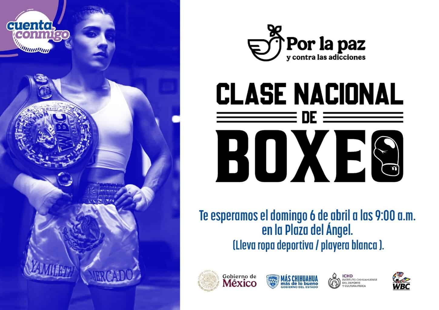 Con el fin de promover el deporte y la activación física como herramienta para prevenir las adicciones, este domingo 6 de abril se llevará a cabo la Clase Nacional de Boxeo “Por la paz y contra las adicciones”, en la Plaza del Ángel de la ciudad de Chihuahua.