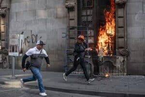 En el video, unas mujeres – etiquetadas de manera despectiva por quien grabó como “las señoras de las Lomas”, seguramente por su vestimenta elegante y el hecho de ir vestidas de blanco— avanzaban con recipientes de agua bendita. Rociaban y “bendecían” al bloque negro cuya misión declarada era la violencia: quemar, destruir, responder con rabia.