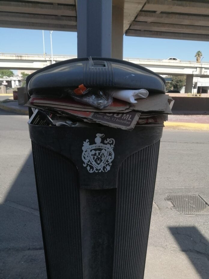 Se nota que ya no le caben los desechos y salen de su bote por la negligencia de quien tiene la obligación de recogerlo.