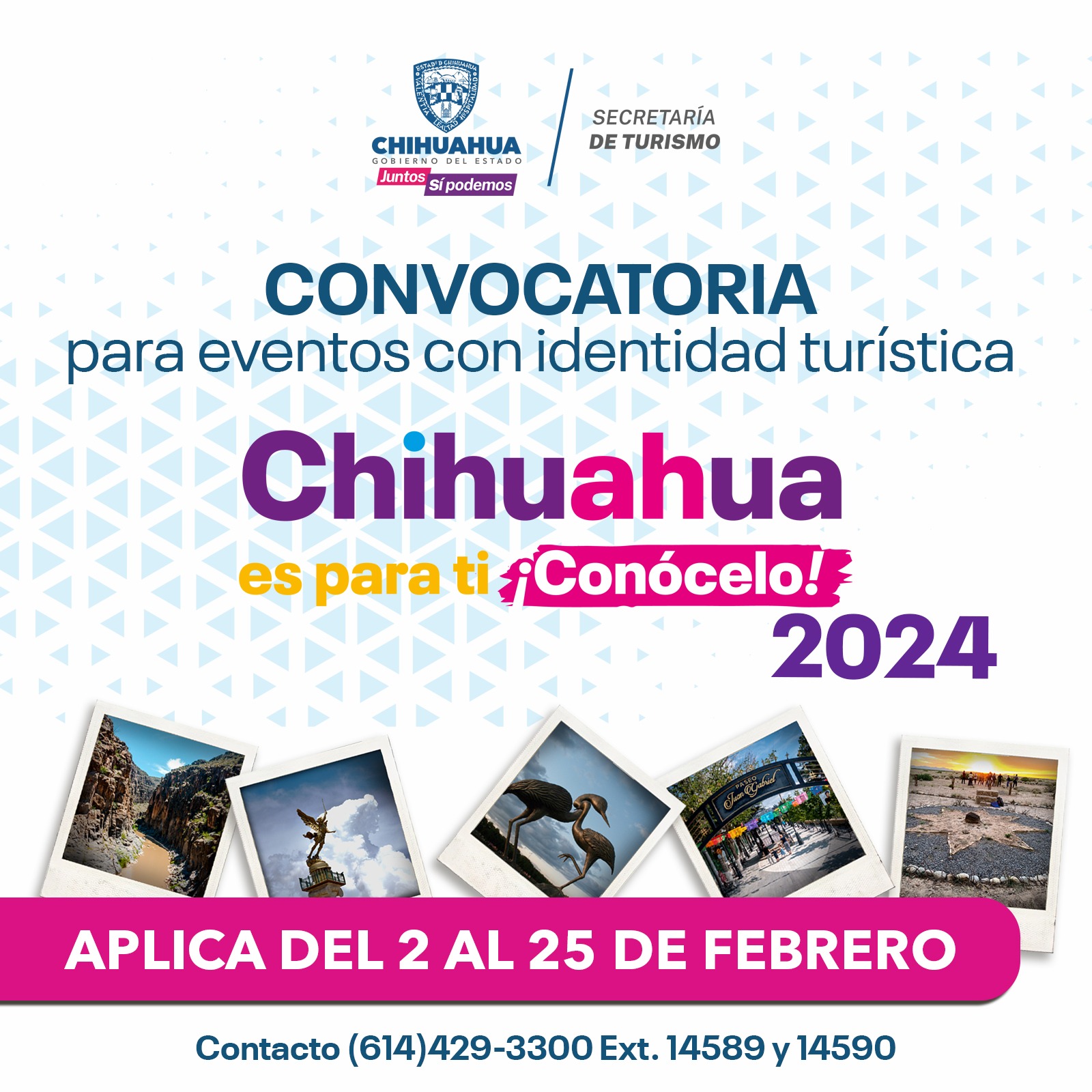 Para más información comunicarse a la Dirección de Promoción Turística, de la Secretaría de Turismo de Chihuahua, al teléfono 614 429 33 00, extensiones 14589 y 14590.