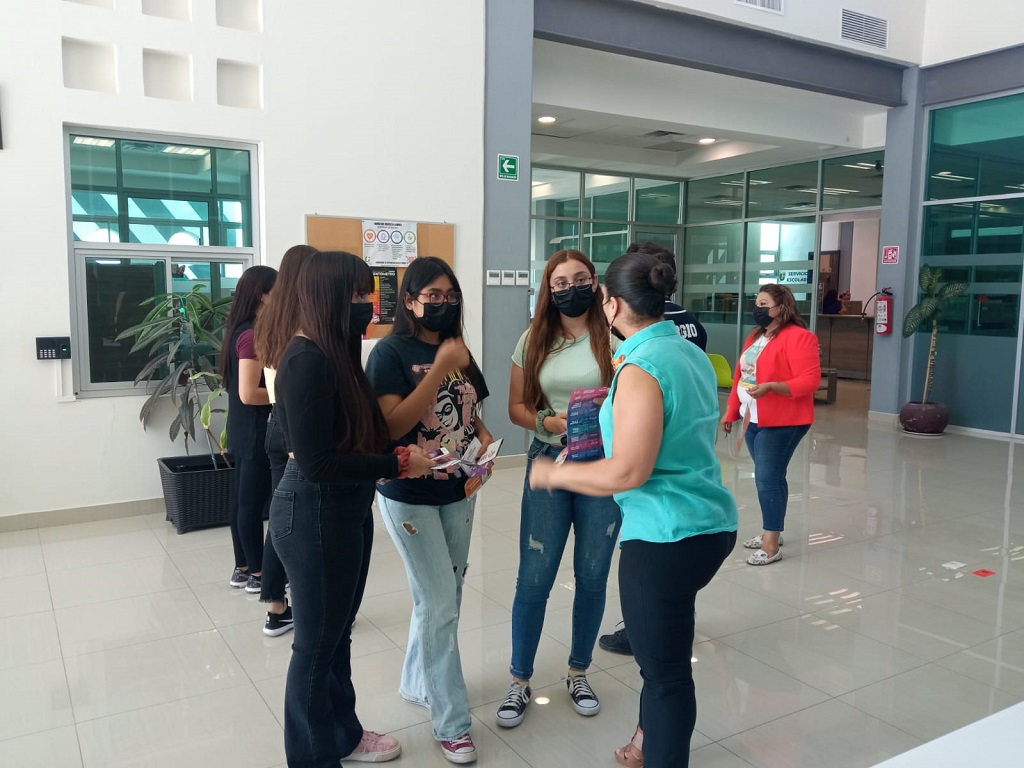 Durante la visita al centro educativo se impartió una plática sobre la violencia y los tipos de violencia al alumnado; además se hizo entrega de tarjetas de descuentos para las mujeres, también se compartió a las estudiantes la aplicación “Yo Segura” y se gestionaron asesorías jurídicas.