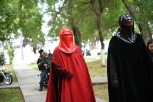 Con guardianes imperiales, un soldado de asalto, motocicletas y custodiados por la Marching Band de la UACH, se llevó a cabo la Ceremonia de Graduación de 40 estudiantes, de las generaciones de 2020 y 2021, de las licenciaturas de Filosofía e Historia, así como la Maestría en Innovación Educativa de la Facultad de Filosofía y Letras.