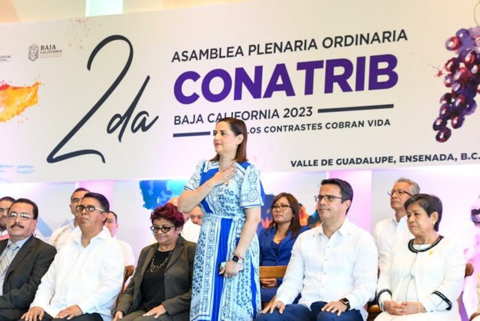 Ensenada, Baja California.- La Presidente del Poder Judicial del Estado de Chihuahua Magistrada Myriam Victoria Hernández Acosta acudió a la ceremonia de inauguración de la segunda asamblea plenaria ordinaria de la Comisión Nacional de Tribunales Superiores de Justicia de los Estados Unidos Mexicanos (CONATRIB) que se realizó en la instalaciones del Museo de la Vid y el Vino, la cual estuvo encabezada por el Magistrado Alejandro Isaac Fragozo López Presidente del Poder Judicial de Baja California, el presidente de la CONATRIB Magistrado Rafael Guerra Álvarez, el Presidente del Congreso de Baja California Dip. Manuel Guerrero Luna y la Gobernadora del Estado de Baja California Marina del Pilar Ávila Olmeda y en la que estuvieron presentes 30 titulares de poderes judiciales del país.
