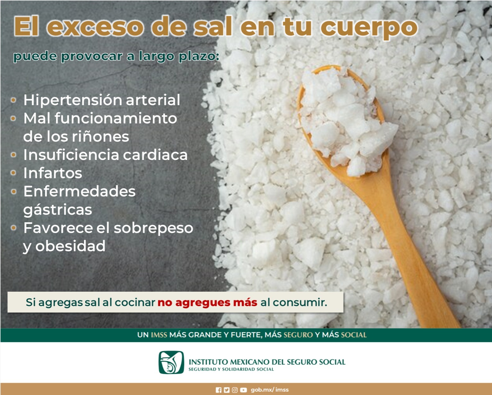 El Instituto Mexicano del Seguro Social (IMSS) en Chihuahua, a través de la Jefatura de Prestaciones Médicas, advierte que el exceso de sodio en nuestra dieta está íntimamente ligado al desarrollo de diversos padecimientos, por lo que es necesario reducir paulatinamente la ingesta de sal en la alimentación diaria.