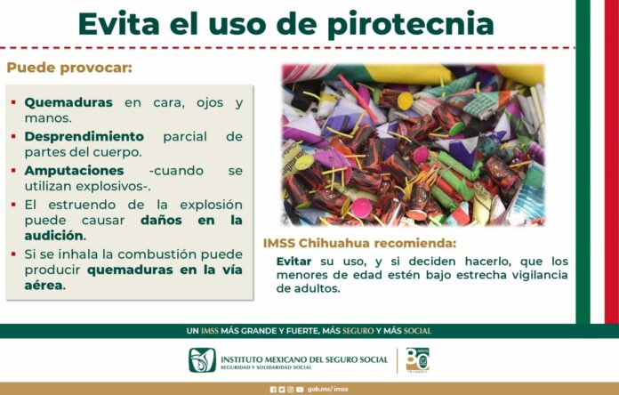 El Instituto Mexicano del Seguro Social (IMSS) en Chihuahua advierte sobre el riesgo de usar cohetes y juegos pirotécnicos en estas fiestas patrias, toda vez que pueden causar lesiones severas.