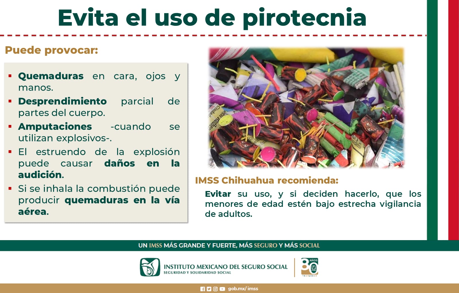 Advierte Imss uso de pirotecnia en fiestas patrias