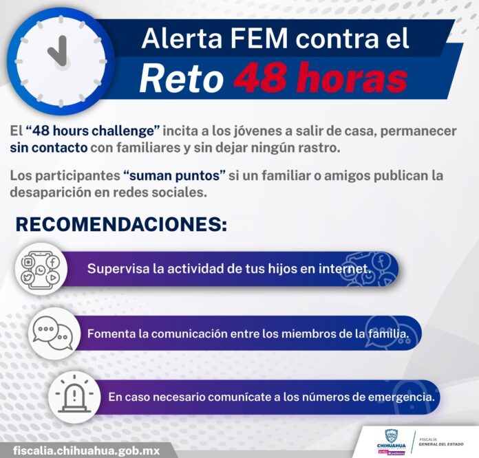El “48 hours challenge”, es un reto viral entre adolescentes, consiste en ausentarse por 48 horas de sus hogares, sin dar a conocer su paradero, con el fin de ganar más seguidores y/o alcanzar el mayor número de reseñas de búsqueda.