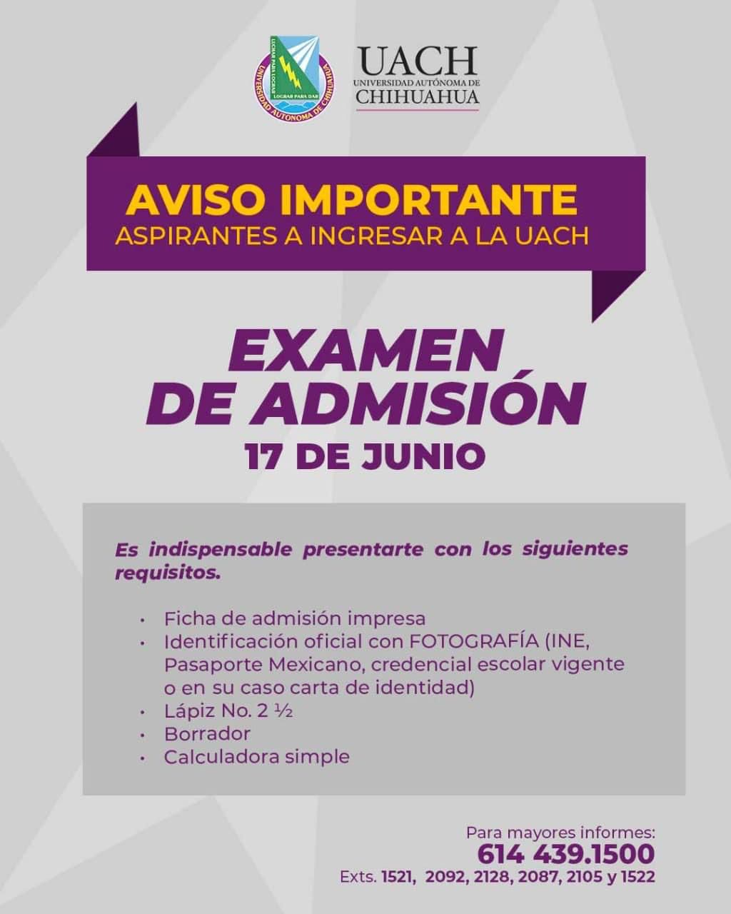 Este próximo viernes 17 de junio, miles de aspirantes a ingresar a la Universidad Autónoma de Chihuahua, realizarán su examen de admisión en las diferentes sedes.