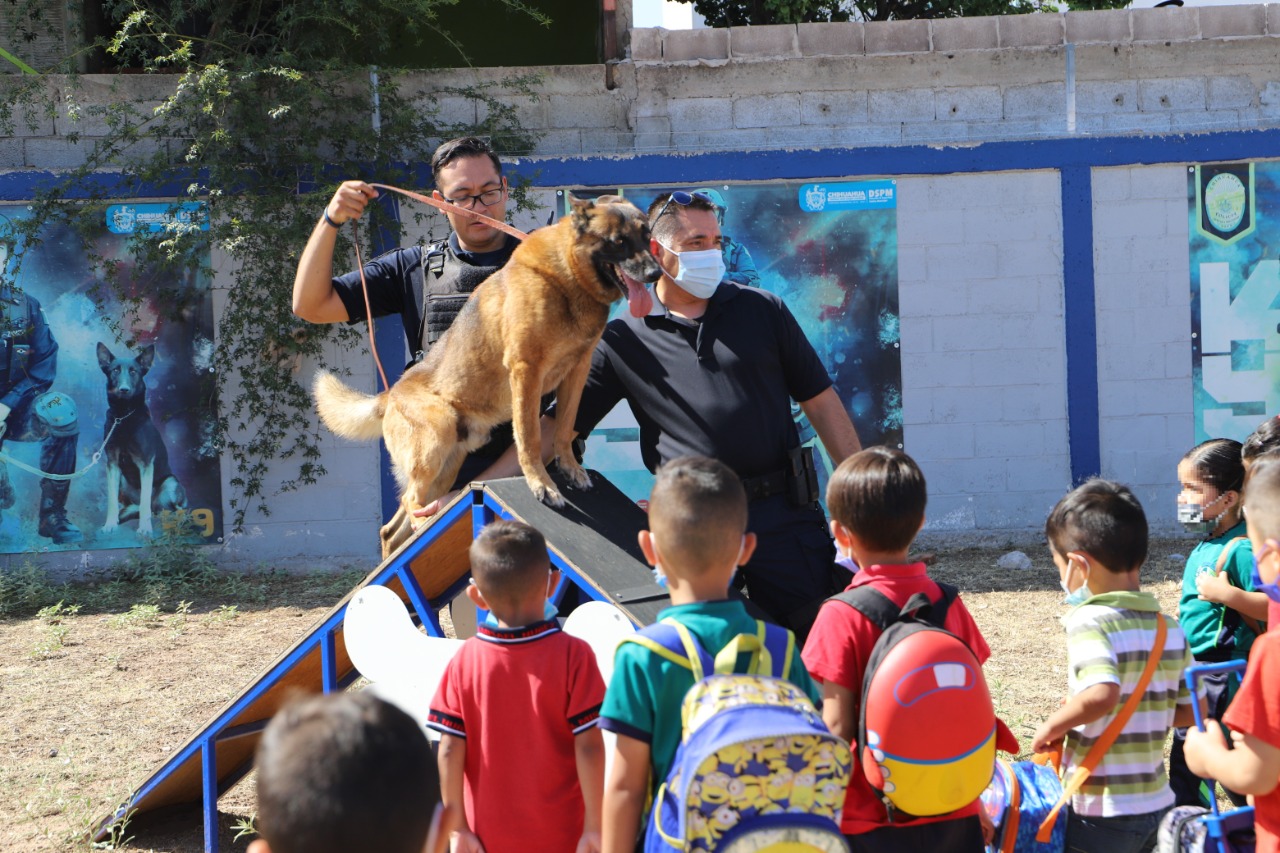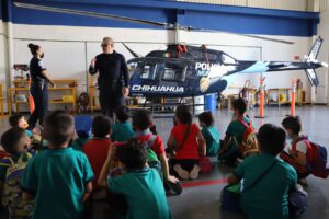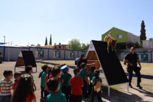 En una breve charla, adecuada a su edad, los oficiales les explicaron cómo opera la Policía Municipal y cómo se atienden las emergencias desde el Centro de Monitoreo. Además, tuvieron la oportunidad de acudir al hangar, donde se encuentra el helicóptero Halcón I, a la estación de Bomberos, que se ubica a un lado de la comandancia, y de presenciar una demostración del Grupo Canino K9, en el mismo campo donde se entrena a los binomios.