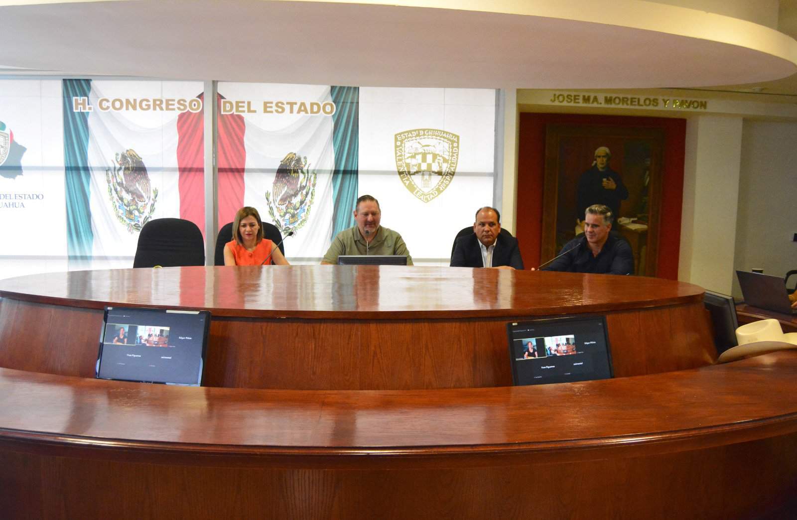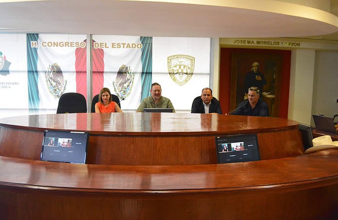 Al presidente de la Comisión de Economía, Industria y Comercio, diputado Carlos Olson San Vicente, le acompañan las diputadas María Antonieta Pérez Reyes, Rosa Isela Martínez Díaz, así como los diputados Edgar Piñón Domínguez, Luis Alberto Aguilar Lozoya, así como el iniciador de la Ley, diputado Omar Bazán Flores.