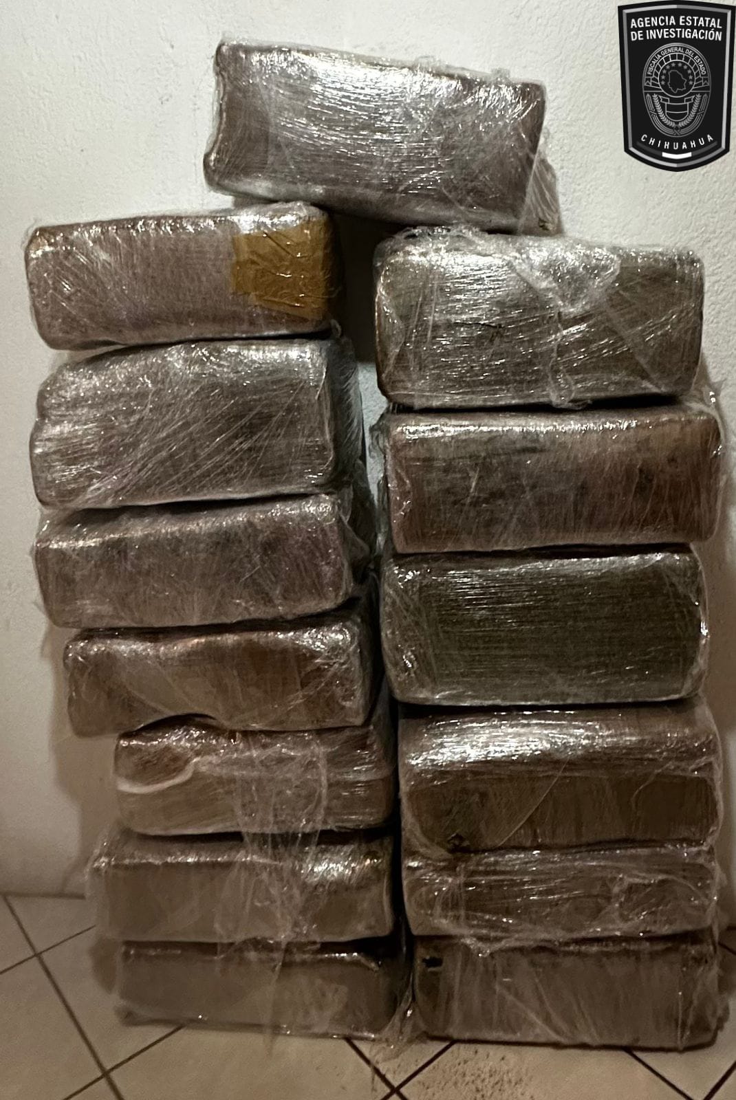 Al interior del vehículo, el Personal Investigador localizó 14 bloques cubiertos con cinta canela, los cuales contenían un total de 111 kilogramos de marihuana.