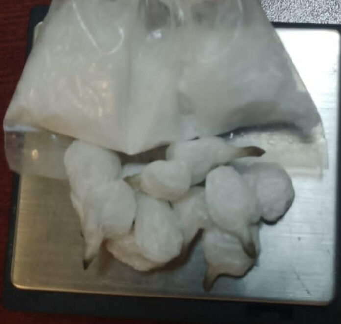 En total se aseguraron 12 envoltorios con una sustancia granulosa y transparente con las características de la droga conocida como “cristal” con un peso de 155 gramos.