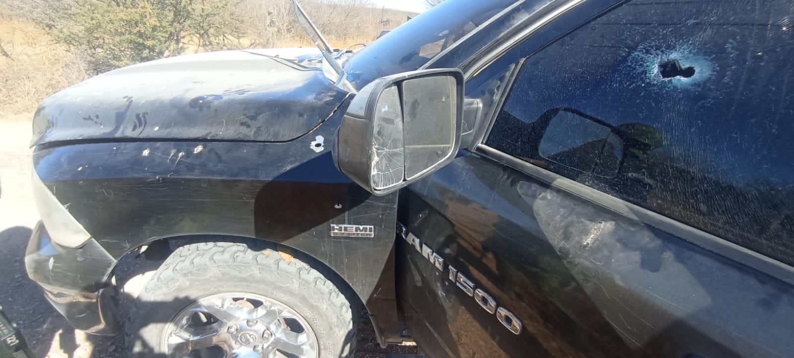 También se localizó un vehículo Dodge RAM, modelo 2012, de color negro, con reporte de robo en la ciudad de Chihuahua.