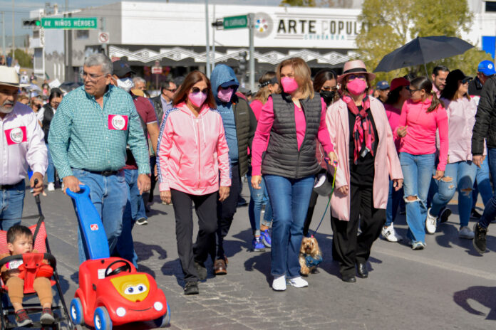 Como una ciudadana más, la gobernadora Maru Campos participó en la marcha por la defensa del Instituto Nacional Electoral (INE), que se efectuó este domingo por las vialidades Universidad, Venustiano Carranza y culminó en la Plaza del Ángel.