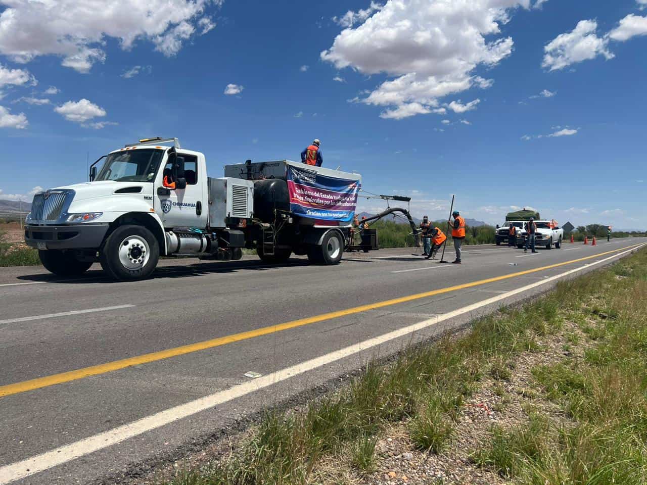 “Quiero reconocer su trabajo diario aquí en la carretera, los resultados son visibles y aunque sabemos que se requiere de una intervención mayor, los trabajos de bacheo han ayudado a reducir los incidentes de los chihuahuenses y visitantes en los últimos días y en tanto se definen las acciones a seguir por las instancias federales”, afirmó.