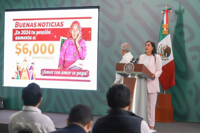 La secretaria de Bienestar, Ariadna Montiel Reyes, anunció que 2024 inicia con el aumento de las Pensiones de Bienestar, y del 3 al 26 de enero se realiza la dispersión de recursos del bimestre enero-febrero, con lo cual se cumple el compromiso hecho por el presidente Andrés Manuel López Obrador en marzo de 2021 de aumentar sustancialmente el monto que reciben los derechohabientes.