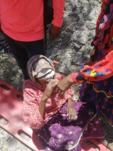 Después del accidente ocurrido, se le brindaron los primeros auxilios correspondientes para posteriormente encamillarla y, con ayuda de un caballo debido al difícil acceso de la zona, empezar el recorrido hacia la institución de salud más cercana.