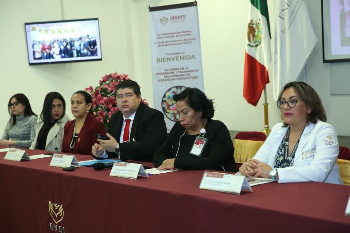 La subdelegada médica de la Zona Regional Oriente del instituto en la Ciudad de México, Rocío González Gutiérrez, inauguró el curso “En la prevención y tratamiento del consumo de sustancias psicoactivas”, en la Unidad de Profesionalización y Escuela Nacional de Enfermería (UPyENE), dirigido al personal que labora en clínicas y hospitales del Issste.