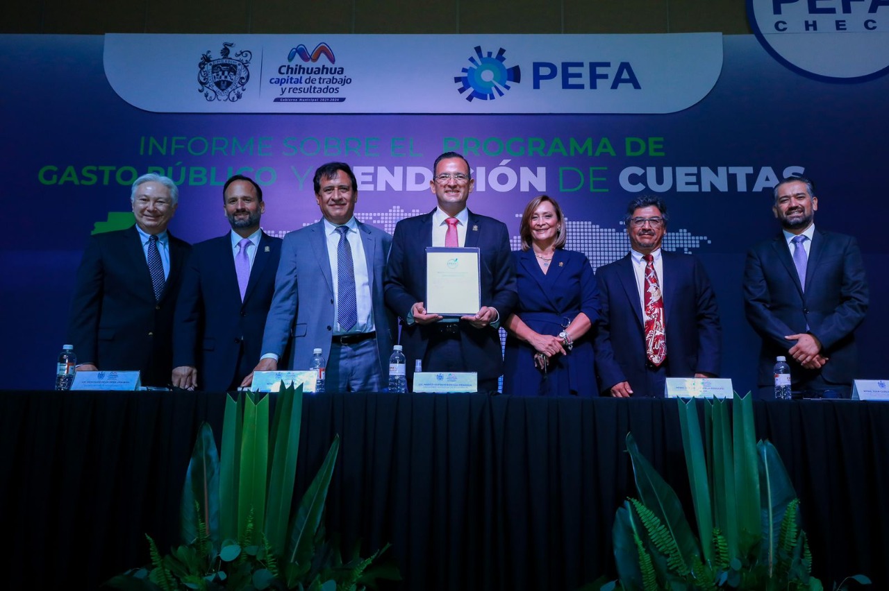 El alcalde de Chihuahua, Marco Bonilla Mendoza, encabezó el Informe sobre el Programa de Gasto Público y Rendición de Cuentas (PEFA por sus siglas en inglés), donde se dio a conocer que Chihuahua Capital es el primer municipio de México en contar con el certificado PEFA Check y el primero de América Latina en aplicar el módulo PEFA Clima.