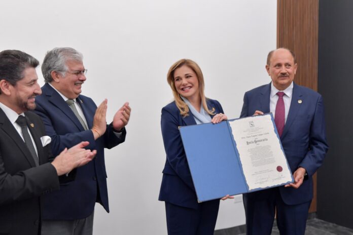 Durante el encuentro, recibió del presidente de la EVM Chihuahua, Rodrigo Sáenz Silva, el nombramiento como socia honoraria, además le entregó del mazo y la campana, que son símbolos de esta organización, deferencia que la mandataria estatal agradeció.