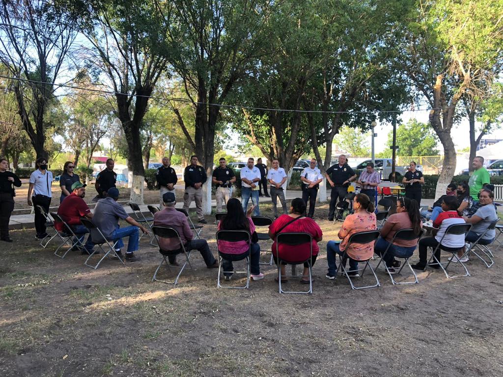 La reunión tuvo lugar a las 18:00 horas en la plaza principal del poblado y acudieron alrededor de 25 vecinas y vecinos que dialogaron con representantes de las subdirecciones administrativas, así como subdirectores operativos, táctico y de inteligencia.