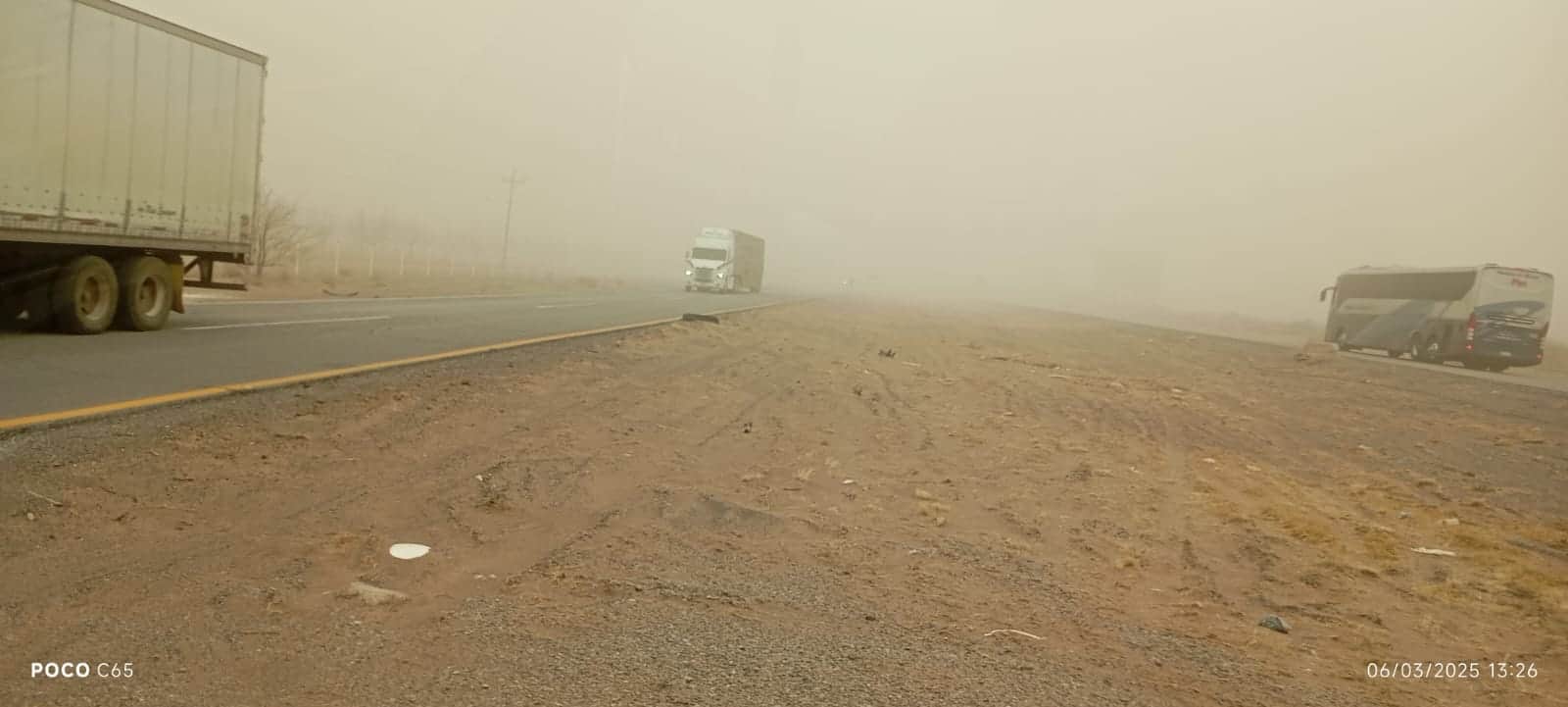 En el caso de las vías Ahumada-Benito Juárez y Ahumada-Ciudad Juárez, también se reporta poca claridad al transitar, por lo que se exhorta a conducir con precaución y de ser necesario, encender las luces y salir de la carretera hasta que las condiciones mejoren.