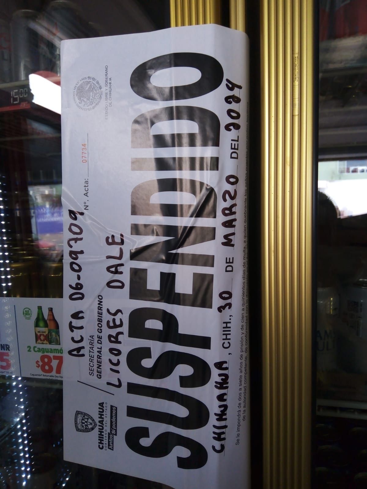 •Licorería “Licores Dale”, por no atender acta anterior (Chihuahua).