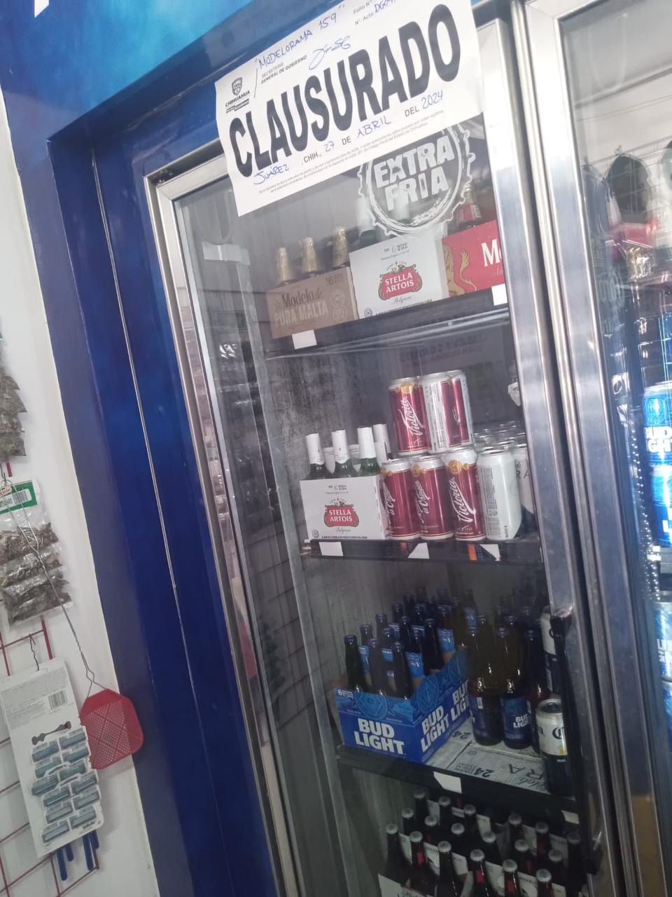 * Tienda de abarrotes “Modelorama 159”, se clausuró refrigerador por falta de licencia de usos de suelo y violación de giro (Ciudad Juárez).