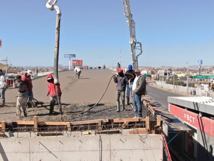 La Dirección de Obras Públicas, inició con el colado de concreto hidráulico de las dos primeras losas del Paso Superior del Distribuidor Vial Sur.