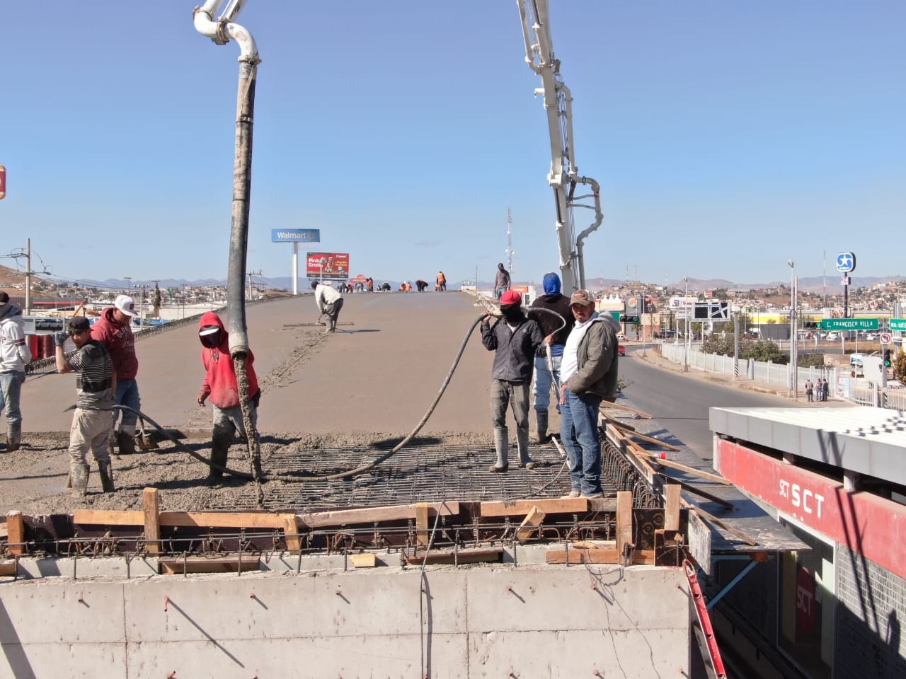 Las labores consisten en colar la superficie de rodamiento del puente a lo largo de 74 metros, con un volumen de 130 metros cúbicos de concreto, cubriendo los dos claros de los 16 que conforman el Paso Superior, este concreto premezclado cuenta con la resistencia de 250 kilogramos por centímetro cuadrado, siendo necesario 19 viajes de los conocidos trompos.