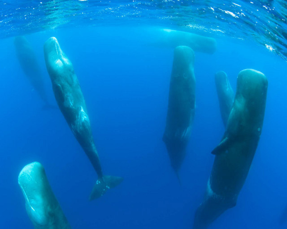 Las ballenas suelen tomar siestas de unos doce minutos de duración pero lo mas curioso de todo es su posición vertical para dormir.