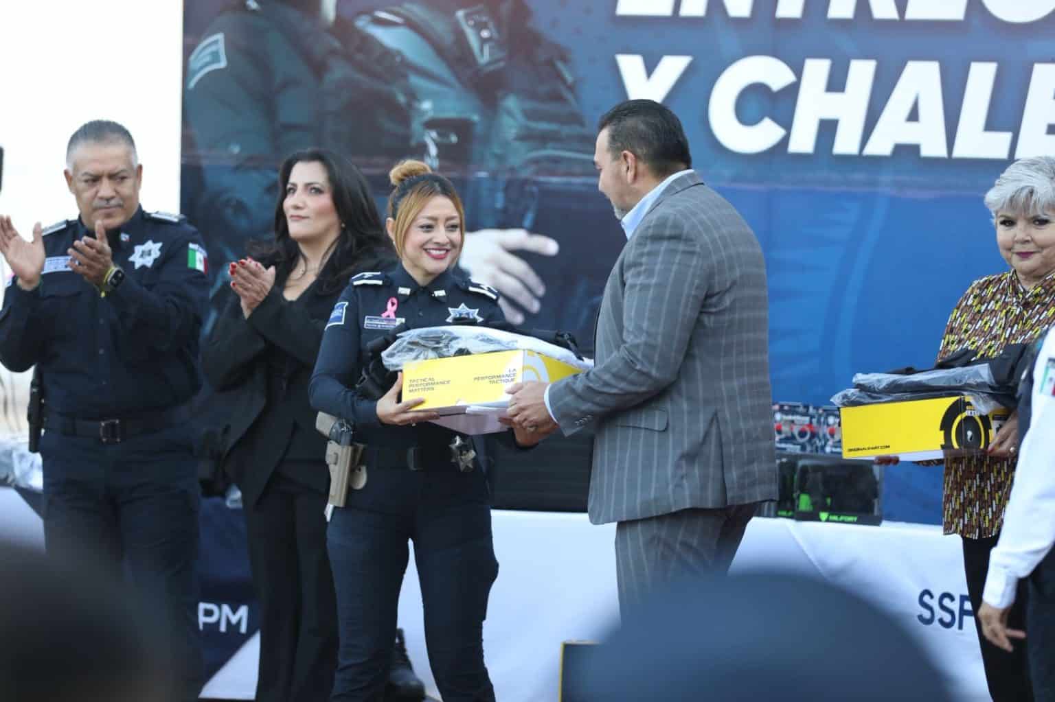 La compra solo alcanzó para 500 chalecos balísticos, 350 pierneras, 350 esposas y 350 fornituras, además de 350 lámparas de mano; 1000 pares de botas; camisolas y pantalones tácticos, algo que no checa con la inversión millonaria que hicieron. Mínimo los agentes preventivos de Juárez deberían andar vestidos como los soldados del Führer, pero no, seguirán igual que los bomberos con los zapatos rotos y los trajes quemados.
