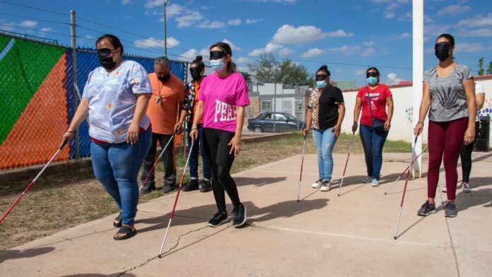 Previo a la experiencia del circuito sensorial, las y los niños participaron en juegos de integración y convivencia. Después, comenzaron las dinámicas de sensibilización con los ojos tapados, en las que utilizaron los demás sentidos para seguir las instrucciones y lograr los objetivos indicados por el personal del Departamento de Atención a Grupos Vulnerables.