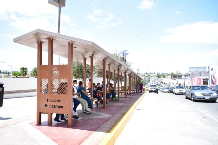 La Dirección de Obras Públicas, finalizó los trabajos de construcción de un Parabús en la avenida Melchor Ocampo, entre las avenidas Niños Héroes y Juárez, a fin de brindar un mejor espacio para esperar el transporte público a los usuarios de 10 rutas.
