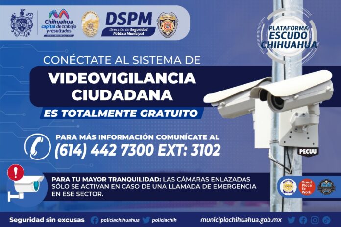 Gracias a la capacidad de la Plataforma Escudo Chihuahua (PECUU) para realizar la interconexión de cámaras ciudadanas a las de la Policía Municipal, y con la finalidad de ampliar el sistema de vigilancia preventiva tanto en viviendas como negocios y escuelas de la ciudad, la Dirección de Seguridad Pública Municipal (DSPM) invita a los chihuahuenses a realizar la conexión de sus sistemas de vídeo vigilancia, trámite totalmente gratuito que permitirá a la autoridad actuar de manera rápida sólo en casos de incidentes.