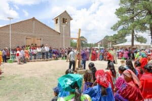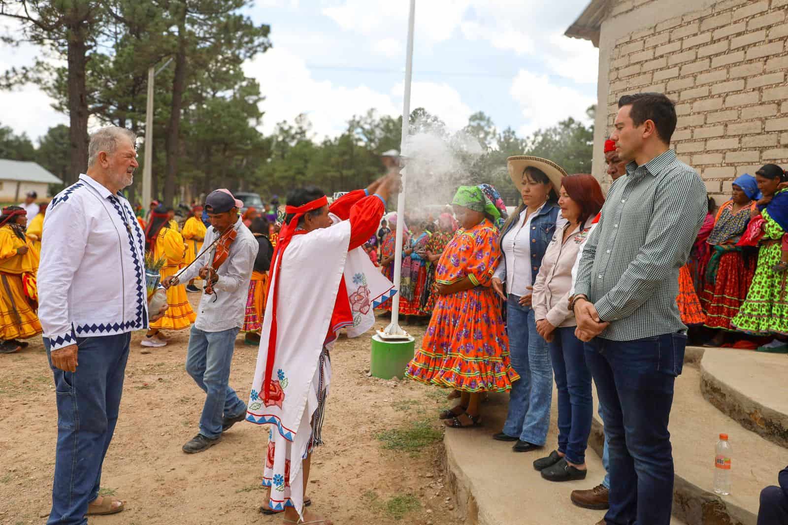 Enrique Rascón Carrillo, titular de la dependencia, encabezó el evento en representación de la gobernadora Maru Campos; también asistieron el presidente municipal, Alejandro Hernández Cruz; la gobernadora indígena de la localidad, María Luisa Bustillos y el hermano marista, Juan Manuel Franco Jáuregui.