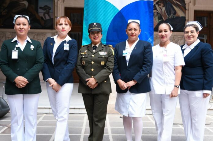 El evento fue encabezado por el encargado de despacho de la Secretaría de Salud, Gilberto Baeza Mendoza; por la subsecretaria de Prevención y Promoción de la Salud, Mirna Beltrán Arzaga, así como de las jefas de enfermería del IMSS, ISSSTE, ICHISAL, Pensiones Civiles del Estado, Servicios de Salud Estatal y del Hospital Militar Regional.