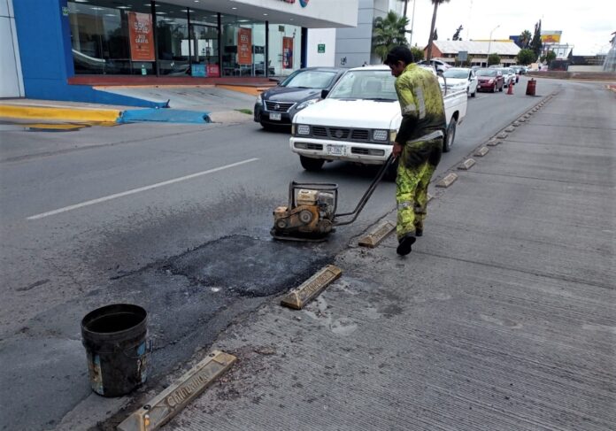 Con el fin de mejorar la movilidad y seguridad vial en la ciudad los trabajos, la Dirección de Obras Públicas continúa con el programa de rehabilitación de la carpeta asfáltica por medio del bacheo de manera intensa.