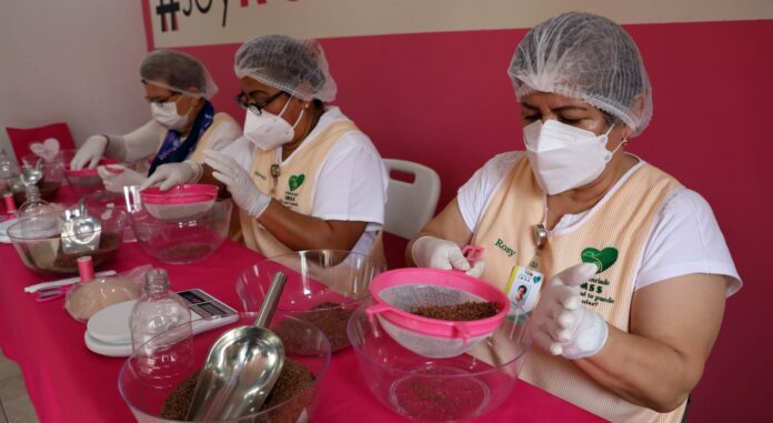 Soy Rosa IMSS, pláticas para la prevención del cáncer de mama y entrega de prótesis de mama artesanales para mujeres cuya línea de tratamiento fue la mastectomía.