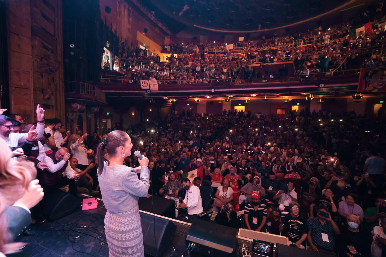 Durante un encuentro con mexicanos en el extranjero, quienes llenaron el teatro Million Dollar, destacó que para lograr que todo el pueblo de México goce de una vida digna es vital trabajar en unidad, pero en especial aseveró que es esencial seguir sumando a más mexicanos y mexicanas al movimiento transformador.