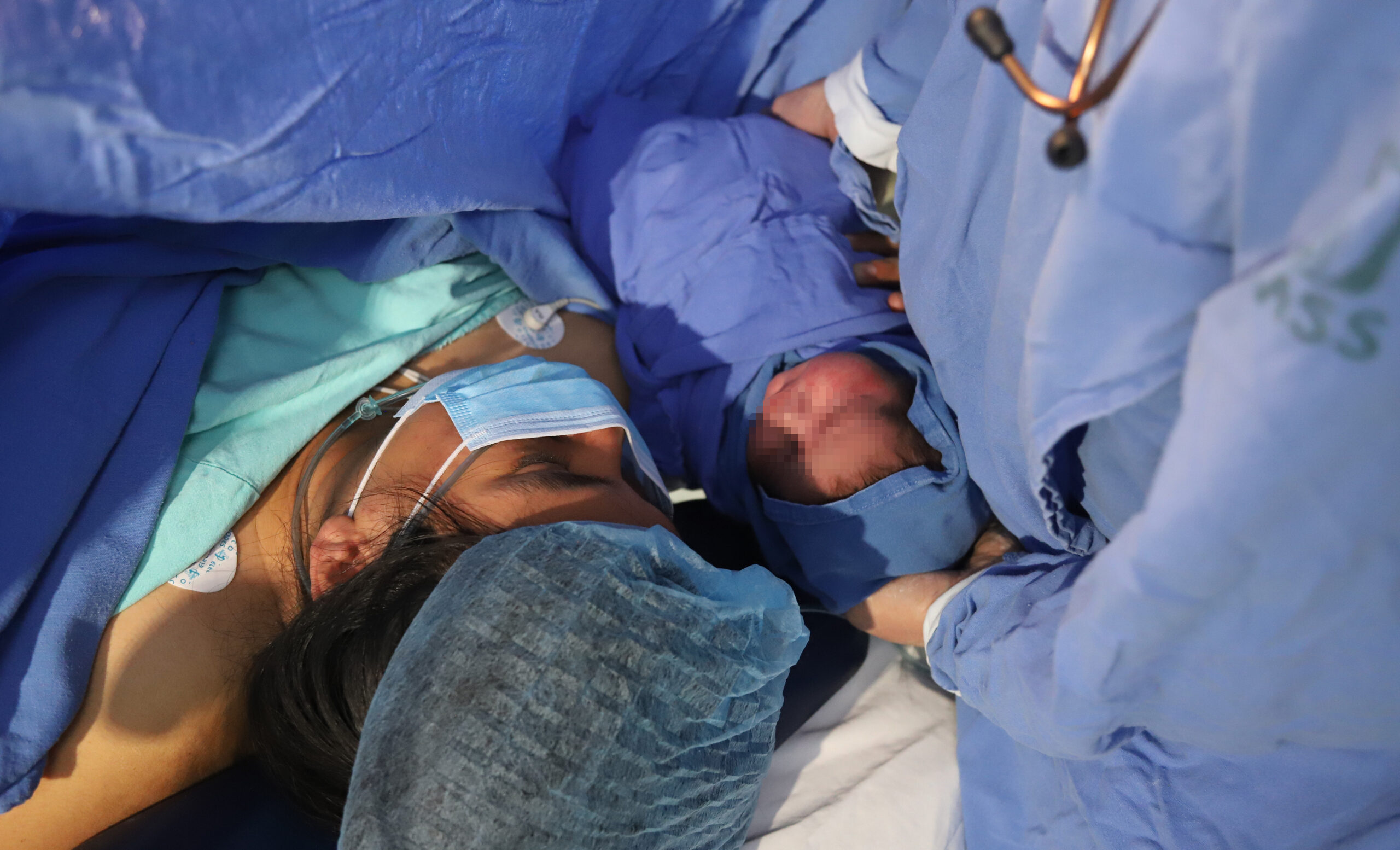 “Vine porque no sentía los movimientos del bebé, me ingresaron por la noche, me estuvieron revisando por la mañana, me hicieron un ultrasonido y ya no tenía líquido amniótico, esto le provocaba estrés al bebé y tienen que hacer la cesárea”, relató.