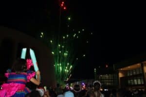 El tradicional Grito estuvo a cargo del cónsul Ibarra y fue seguido por un espectáculo de fuegos artificiales, como es tradición en este festejo.