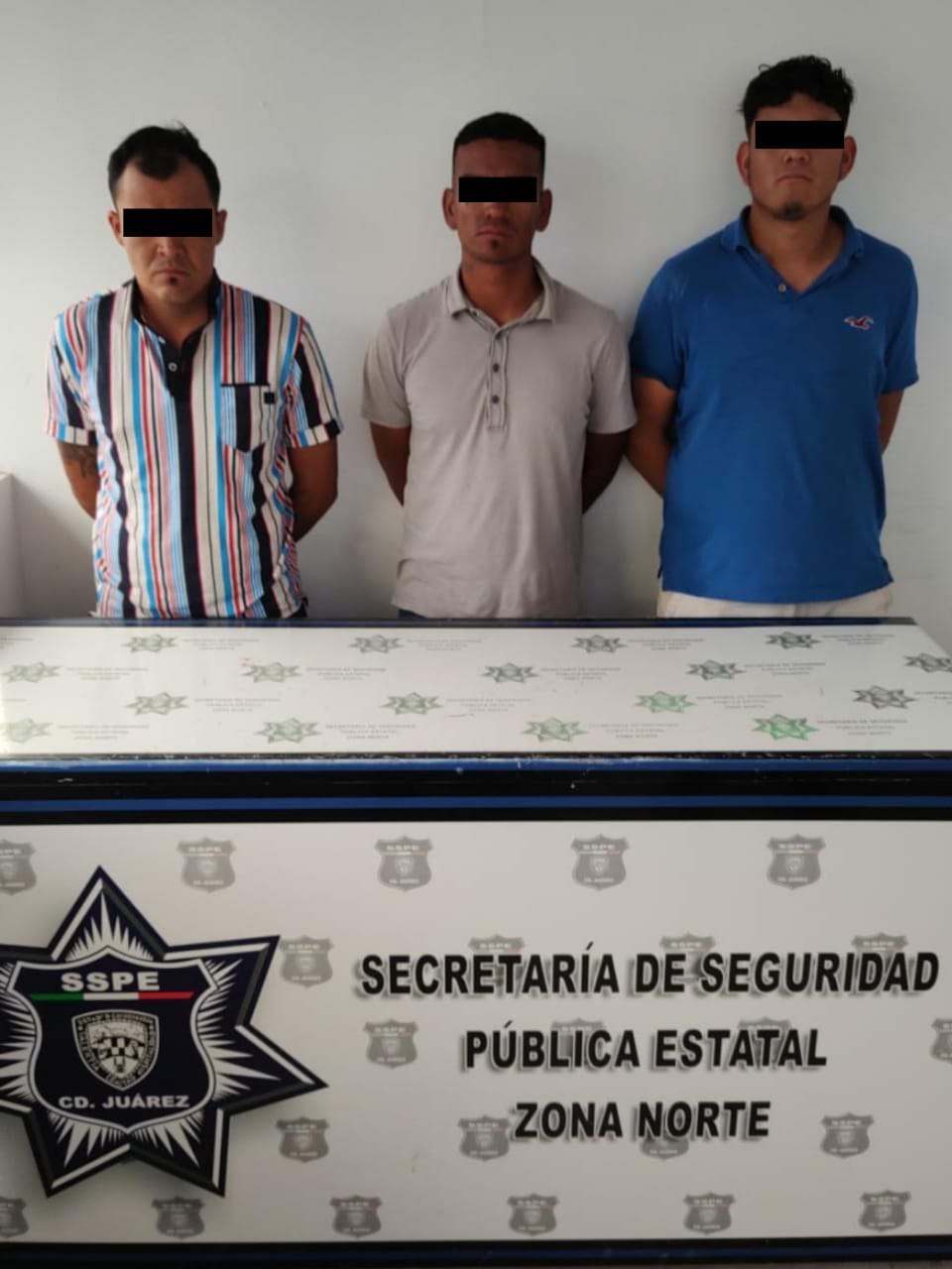 Los detenidos fueron identificados como Cristian Manuel O. G. de 22 años de edad; Erick Daniel H. A. de 25 años de edad y Carlos Manuel M. M. de 24 años de edad, los dos primeros originarios de Ciudad Juárez y, el último originario del Estado de Coahuila.