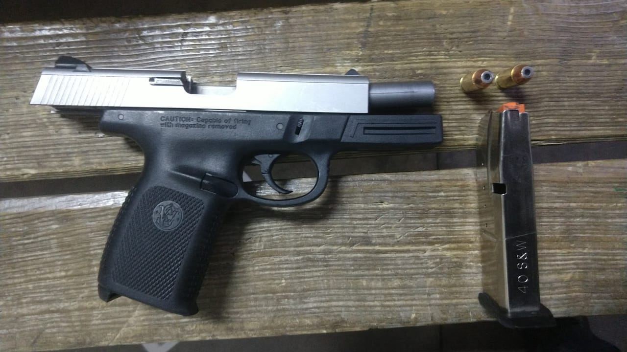 En una segunda intervención las células mixtas de Chihuahua detuvieron a Manuel P. C. alias “La Piraña” de 47 años de edad para realizarle una inspección cuando circulaba por calles de la Colonia San Jorge, a bordo de un automóvil Nissan Versa, color guinda y portaba un arma de fuego corta marca Smith & Wesson Calibre .40 mm, con un cargador y 2 cartuchos útiles del mismo calibre, los cuales le fueron asegurados.