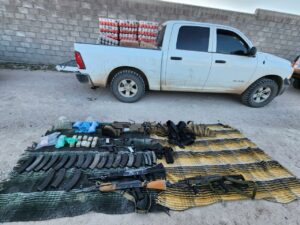A los detenidos se les aseguraron los siguientes artículos: 4 armas cortas marca Pietro Beretta, calibre .9mm y un cargador con 17 tiros Glock 34Gen4 calibre 9mm y un cargador con 16 tiros; Ruger calibre .22 y un cargador con 01 tiro; Belgium calibre .380; 1 Sub-Ametralladora, PTR calibre .9×19 mm y un cargador con 25 tiros.