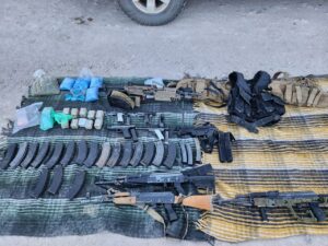 3 armas largas: VSKA century arms calibre 7.62×39 mm y un cargador con 30 tiros. VSKA century arms calibre 7.62×39 mm y un cargador con 30 tiros y Romarm/Cugir calibre 7.62×39 mm y un cargador con 30 tiros.